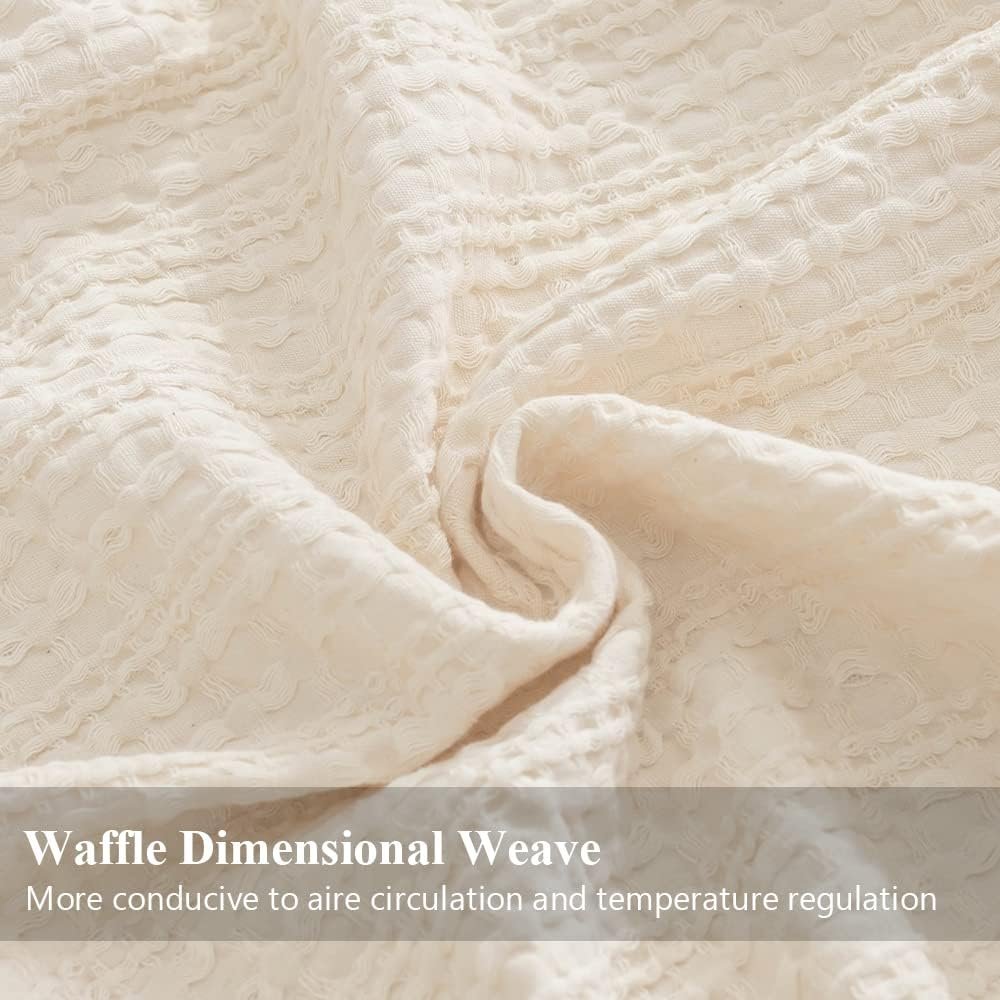 - [Classic Waffle Weave Design]: Exquisite Waffle Design features three-dimensional, puffy and elegant appearance, which is one of our favorite trends for the season. the springy texture can complement any décor. Meanwhile the special waffle weave helps with air circulation and enhance the breathability of the blanket. Skilfully crafted design and rolled fringed edges for a beautiful finish that won’t unravel in the wash.