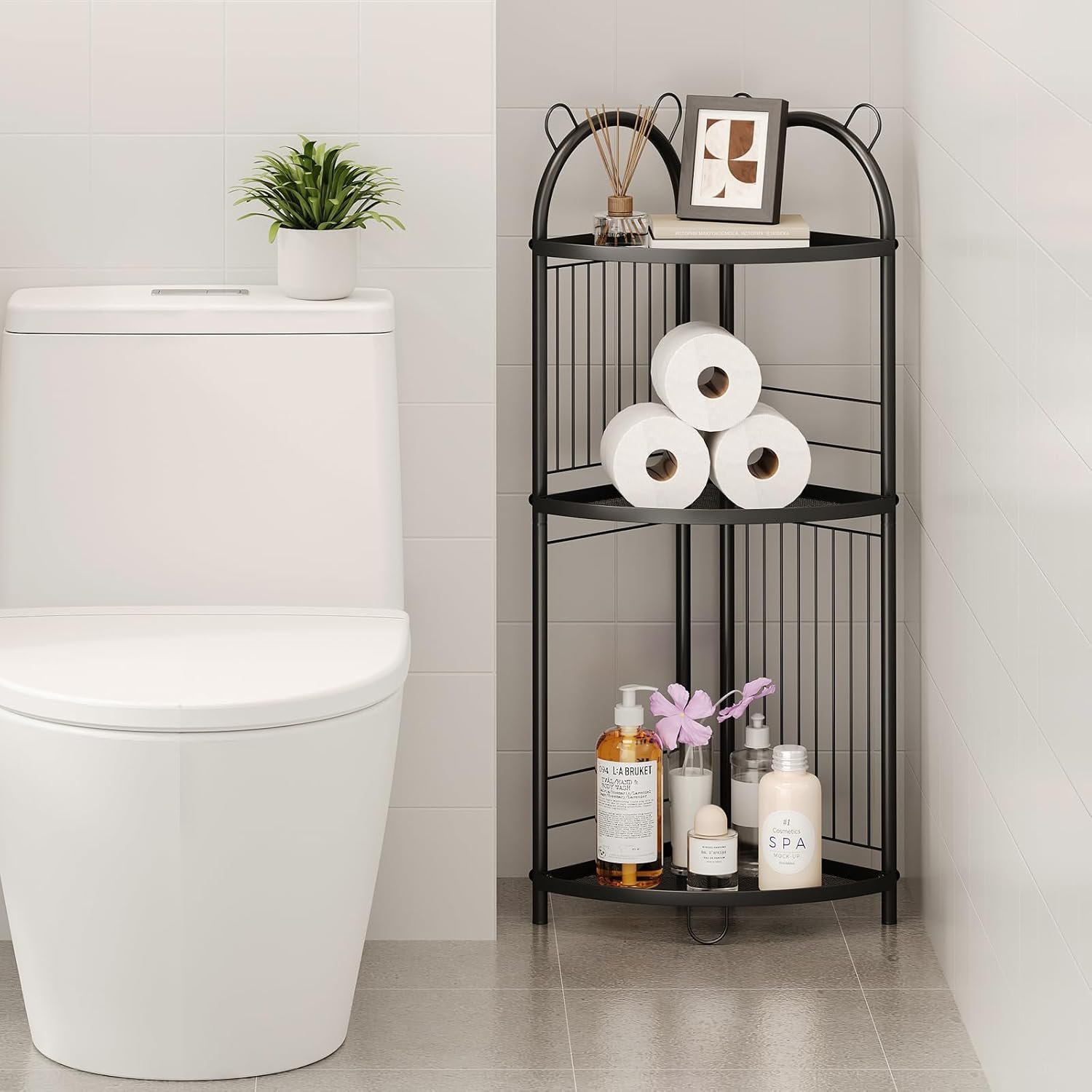 - 【Premium Metal and Strong Structure】 Most similar bathroom stand on the market are made of plastic, but our corner standing shelf is made of all-metal. Compared with plastic shelves, ours is more durable and does not change color or deform.