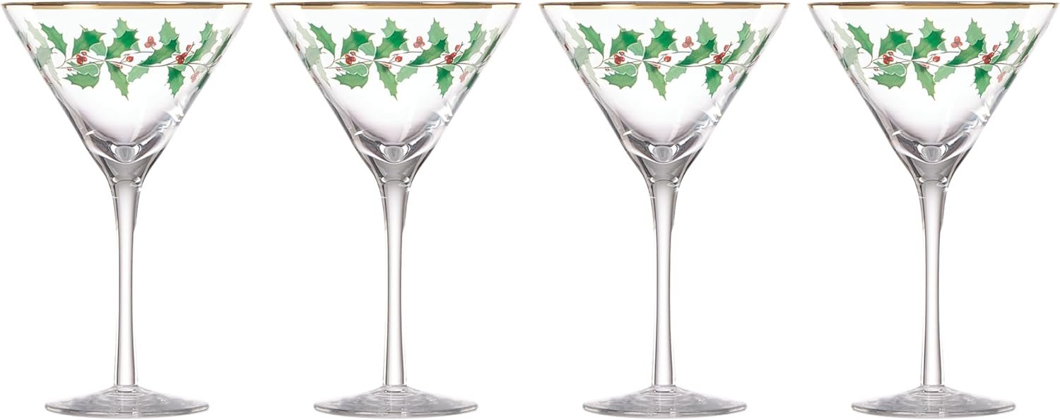 Holiday Decal 4-Piece Martini Glass Set, Christmas Dinnerware, Hosting